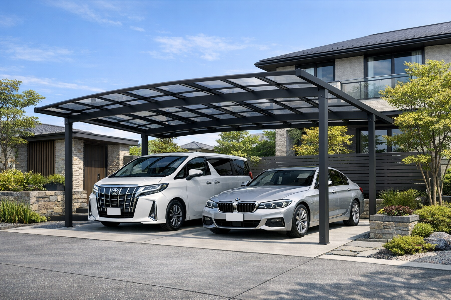 屋根の形状(曲線タイプ・直線タイプ)、屋根材の種類、対応する駐車台数により選択肢が広がります。